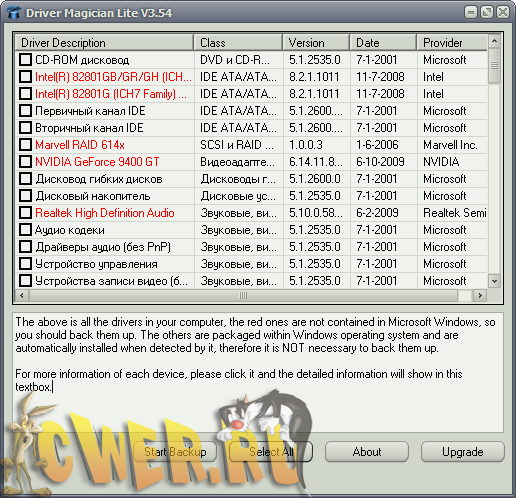 Driver Checker - менеджер драйверов который не только обнаружит и "вытащит" драйвера из системы для их возвращения на место после переустановки системы, но и обновит их на более свежие, из большой базы данных оригинальных драйверов от производителей. Поддерживает и автоматически обновляет драйвера: принтеров и сканеров, USB, звука, Vista, Bluetooth, мыши и клавиатуры, Видео, RAID, модемов и сетевых карт, веб-камер, графических карт, VGA и других Windows-драйверов.