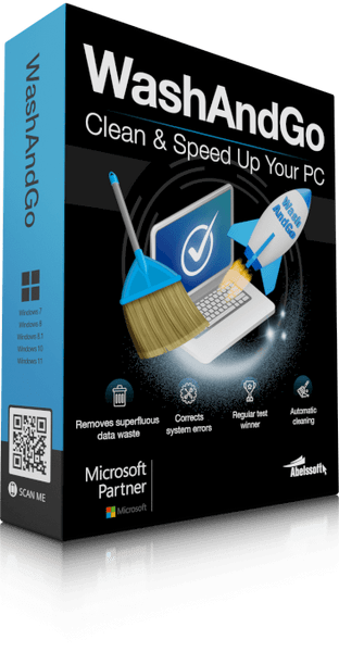 Abelssoft WashAndGo — эта программа позволяет пользователям легко и просто очистить жесткий диск компьютера, освобождая место на диске и ускоряя доступ к важным данным. Программа быстрая, безопасная и надежная. WashAndGo удаляет мусорные файлы, которые заполняют жесткий диск и ничего не делают, кроме замедления компьютера. Мусорные файлы, которые могут быть удалены WashAndGo включают временные файлы которые не удаляются, когда программы закрыты, копии старых файлов безопасности, которые создаются автоматически с помощью некоторых программ, файлы без реального содержания и др.
