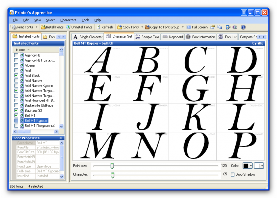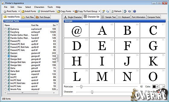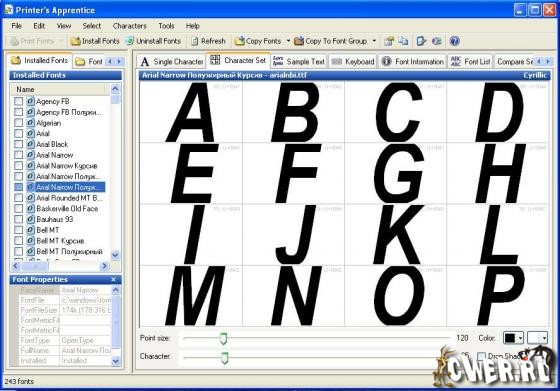 Printer's Apprentice представляет из себя потрясающий менеджер шрифтов для операционных систем Windows, который можно бесплатно скачать на cwer.ws. Если вы являетесь художником, профессиональным публицистом или просто программным энтузиастом, и если у вас на компьютере имеется большое количество разнообразных шрифтов, то данная программа поможет вам в организации вашей коллекции. Программа поддерживает работу с шрифтами форматов TrueType, Adobe Type, и OpenType. С помощью этой утилиты вы сможете просматривать, сравнивать и выводить на печать ваши шрифты, установленные в системе. Также программа позволяет просматривать шрифты в указанных директориях, которые еще не установлены в систему, но хранятся на жестком диске - для этого в программу встроен браузер для просмотра шрифтов из указанного хранилища. Вы можете устанавливать и удалять шрифты намного быстрее, проще и удобнее с данной программой, чем это делаете через панель управления.