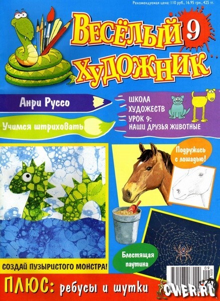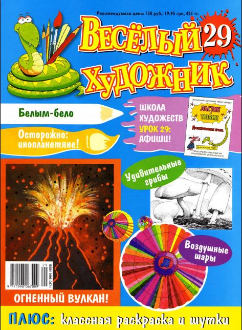 «Веселый художник» — серия художественных журналов для детей, которая превратит обучение рисованию в увлекательнейшее занятие. В каждом выпуске — специальные пошаговые упражнения по живописи, рисованию и мультипликации, а также художественные материалы для воплощения идей.