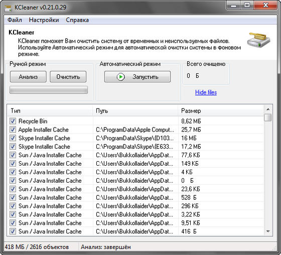 KCleaner бесплатная утилита для поиска ненужных файлов на компьютере. Она уникальна полной автоматизацией процесса и фоновой работой!