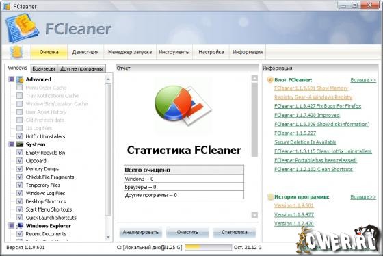 FCleaner - комплексный пакет для очистки и оптимизации системы.