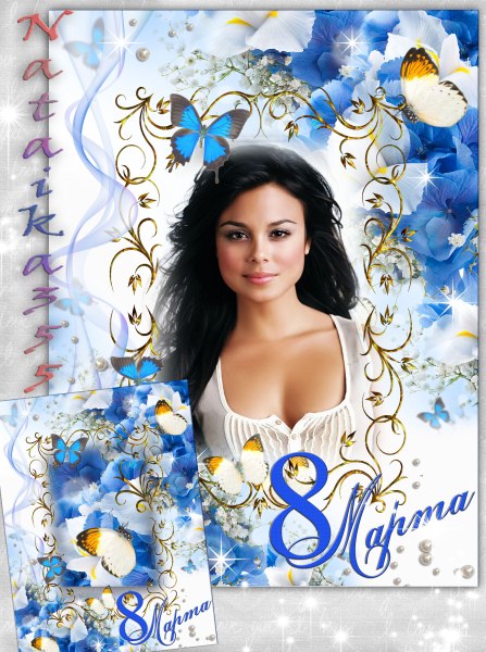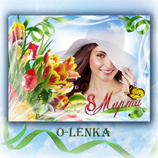 Многослойная цветочная фоторамка с бабачками ко дню 8 Марта, она может стать хорошим дополнением к подарку.