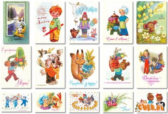 Старые добрые открытки, поздравления с днем 8 Марта. Думаю что и вы дарили такие открытки своим мамам и бабушкам, и сейчас многие из них хранятся в старых фотоальбомах (ностальгия).