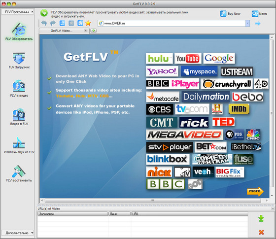 GetFLV Pro - новая версия программы, которая является полностью интегрированным набором мощных утилит для загрузки, управления, конвертирования, восстановления и воспроизведения FLV видео файлов.