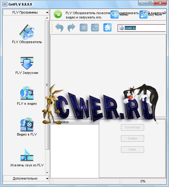 GetFLV Pro - это сборник из 7 модулей, который позволяет производить весь спектр операций с .flv файлами. GetFLV Pro позволяет скачивать, управлять, конвертировать в различные форматы и из различных форматов, извлекать звук, восстанавливать и воспроизводить FLV видео.