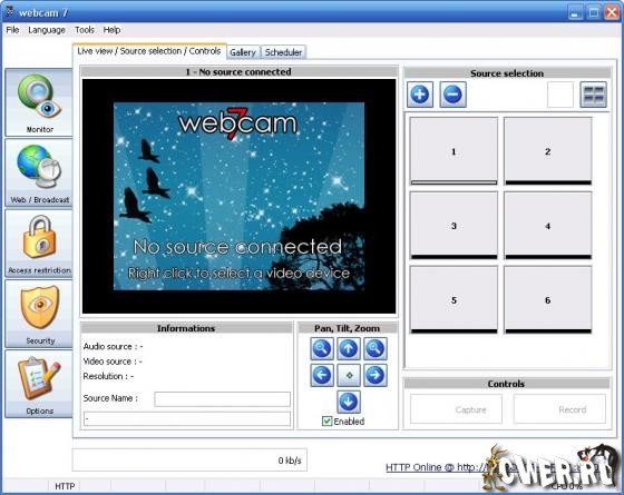 Webcam 7 - мощная программа для работы с веб-камерами (поддерживает до 10 камер), позволяющая предоставить доступ к вашей камере (вернее, к видеопотоку) любому пользователю без установки на компьютер специального серверного программного обеспечения. Довольна проста в настройке: в Webcam 7 имеются все необходимые утилиты, поэтому потребуется настроить всего несколько параметров, а именно указать порт сервера и путь к локальной директории. Кроме видеокартинки, получаемой с веб-камер, можно использовать видео, которое передаётся по локальной сети.
