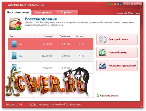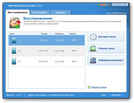 WinMend Data Recovery - это приложение для восстановления данных с жестких дисков, Compact Flash, Memory Stick и других носителей. Восстанавливает файлы и данные, потерянные в результате случайного удаления, форматирования, атаки вирусов, проблем при создании разделов или загрузке, неправильного выключения компьютера, форматирования носителя данных. Программа поддерживает следующие файловые системы: FAT12/ FAT16/FAT32/NTFS/NTFS5.