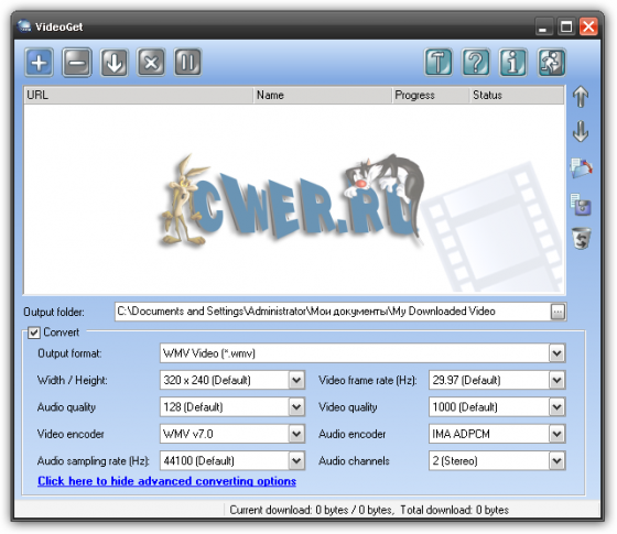 VideoGet - программа для скачивания видео клипов с больше чем 100+ видео веб-сайтов (YouTube, Yahoo Video, MySpace, VSocial, Metacafe, и много-много других). Многие из этих веб-сайтов держат видео в FLV формате, и большинство людей не знает как проигрывать эти файлы, VideoGet позволит вам конвертировать все видео в множество популярных форматов для более комфортного проигрывания. VideoGet поддерживает AVI, MPEG1, MPEG2, WMV, FLV, MP4, 3GP, MP3 форматы, так что вы имеете возможность не только посмотреть видео на своем компьютере, но и переписать его на свой iPod, мобильный телефон или любой другой портативный прибор. Кроме того вы самостоятельно можете задавать настройки конвертации.