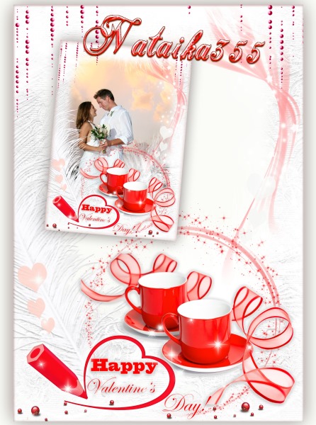 Романтическая фоторамка с поздравлением ко дню святого Валентина, все элементы на отдельных слоях.