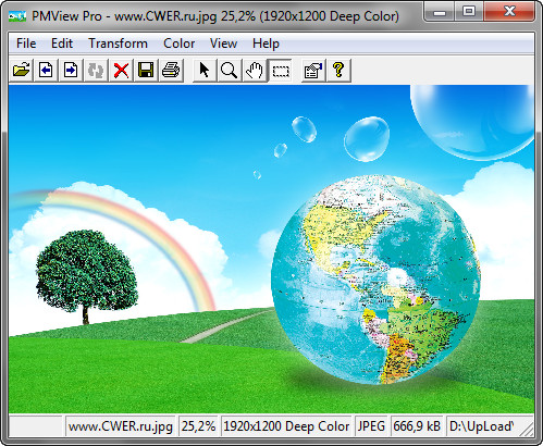 PMView — программа для просмотра, редактирования и конвертации растровых изображений. Главной особенностью программы является невероятно быстрая скорость открытия графических файлов. Программа позволяет открывать более 40 типов графических файлов, включая такие как: JPEG, GIF, BMP, PNG, TIFF и многие другие. Программа включает в себя также различные методы восстановления изображений. Таким образом, если у вас имеется плохое или поврежденное изображение, программа попробует восстановить его на столько, на сколько это будет возможно. Данный инструмент — это не только просмотрщик графики, но также и отличный инструмент для редактирования, конвертации изображений и снятия скриншотов.