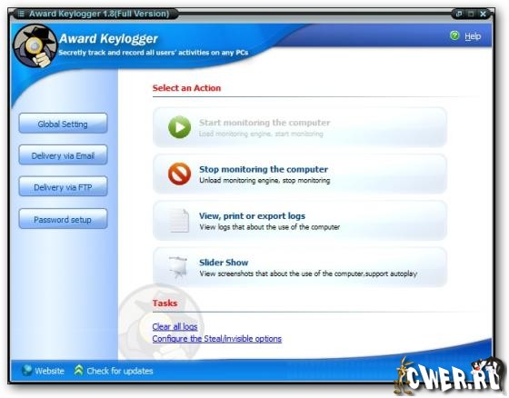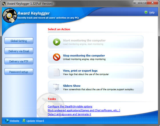 Award Keylogger - программа позволяет вам следить за всеми пользователями на любом компьютере в режиме реального времени и вести запись истории каждого компьютера, Award Keylogger позволяет легко просматривать в реальном времени, скриншоты любого компьютера, все набранные символы, посещенные веб-сайты, используемые программы. Вы можете просматривать список запущенных процессов и прекратить нежелательные.