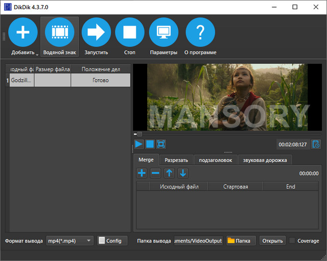 DikDik является лучшим программным обеспечением для редактирования видео, добавления водяных знаков и субтитров, она может добавлять видео, аудио, изображения, слова и субтитры в WYSIWYG, и может устанавливать время появления, положение, размер и анимированные эффекты для водяных знаков и субтитров к видео, и предварительный просмотр по желанию. Она может добавлять водяные знаки и субтитры к видео в пакетном режиме, разделять и объединять видео в пакетном режиме.