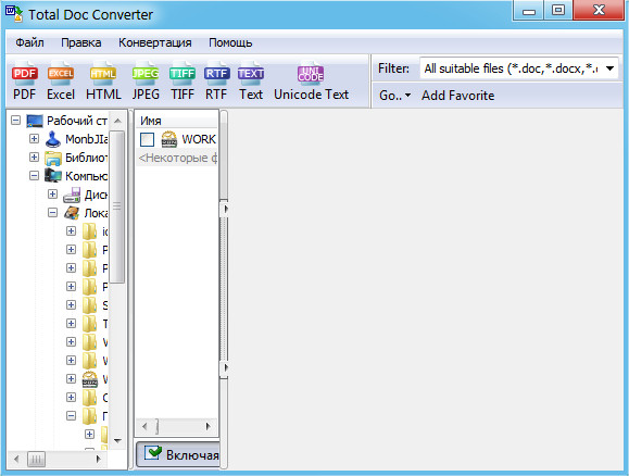 Total Doc Converter решает проблему конвертирования Doc файлов в PDF, HTML, XLS, JPG, TIFF или Text. Total DOC Конвертер умеет приводить все DOC файлы к единому форматированию. Если у вас 1000 doc файлов и у всех разное форматирование, просто задайте нужные настройки в Total DOC Converter. Программа обработает все файлы автоматически, и на выходе Вы получите документы с одинаковым форматированием.