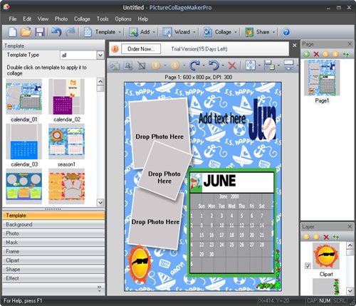 Picture Collage Maker - простая в использовании программа для создания коллажей из ваших фотографий. Простой интерфейс программы и множество шаблонов позволят легко создавать разнообразные фотоколлажи (календари, поздравительные открытки, пригласительные билеты, постеры и т.д.) даже неопытным пользователям.
