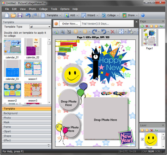 Picture Collage Maker - это простой интерфейс программы и множество шаблонов позволяющих легко создавать разнообразные фотоколлажи (календари, поздравительные открытки, пригласительные билеты, постеры и т.д.) даже неопытным пользователям. Помимо этого, в программе имеется большое количество масок, рамок и клипартов. Создание коллажей - это расслабляющее времяпровождение помогающее превращать собранные фотографии в драгоценные воспоминания.