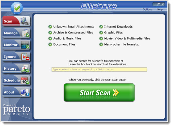 ParetoLogic FileCure — программный продукт, который сканирует реестр Windows и определяет, какие форматы файлов поддерживаются установленными на вашем ПК приложениями. Если на компьютере не установлено нужного программного обеспечения, FileCure предложит вам установить его для того, чтобы открыть определенный тип файлов.