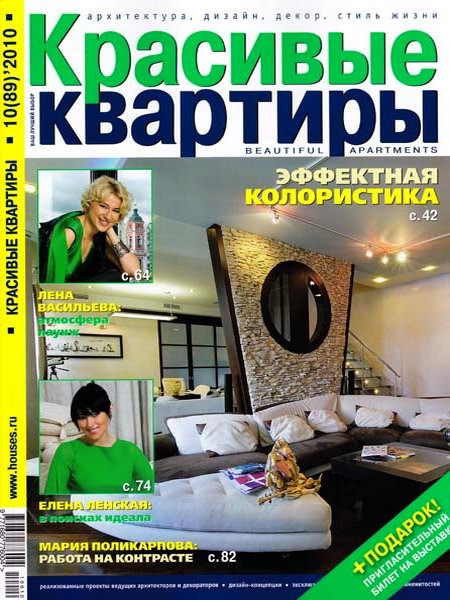 "Красивые квартиры" - свежая информация о ремонте, перепланировке, реконструкции жилища, оформлении интерьера, традиционном и современном дизайне, применении для этих целей самых оптимальных материалов и технологий. В качестве авторов и консультантов выступают признанные специалисты в этой области, профессионалы-практики России и стран Европы.