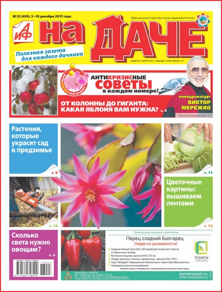 Полезное и интересное издание для всех, у кого есть приусадебный участок. Просто и доступно о саде, огороде, цветниках, пчелах, домашних животных. Практические рекомендации специалистов, уникальный опыт любителей, знакомство с новинками садового и цветочного мира. Это толковый помощник по дому, саду, огороду, которому известны все тонкости выращивания, обрезки, поливки, ландшафтного дизайна. Для всех неравнодушных к своим дачным участкам.