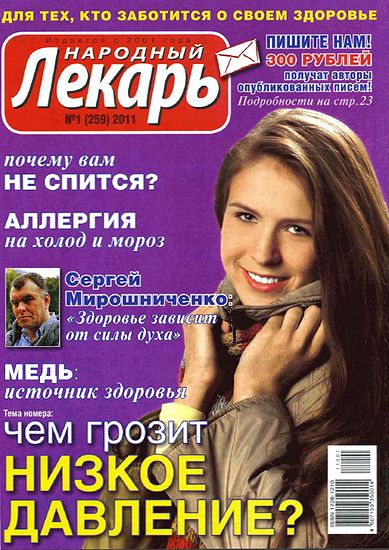 Журнал для тех, кто заботится о своём здоровье. Тема номера - чем грозит низкое давление? В номер вошли также следующие материалы: гимнастика при гипотонии, зелёная аптека - фитотерапия против болезней, аллергия на холод и мороз, сон и жизненный тонус, научный подход к сладкому, рецепты читателей, рецепт мужского здоровья, советы психолога, лекарство с грядки, толокно полезно всем, гимнастика при остеохондрозе, картофельный крахмал в домашней косметике.