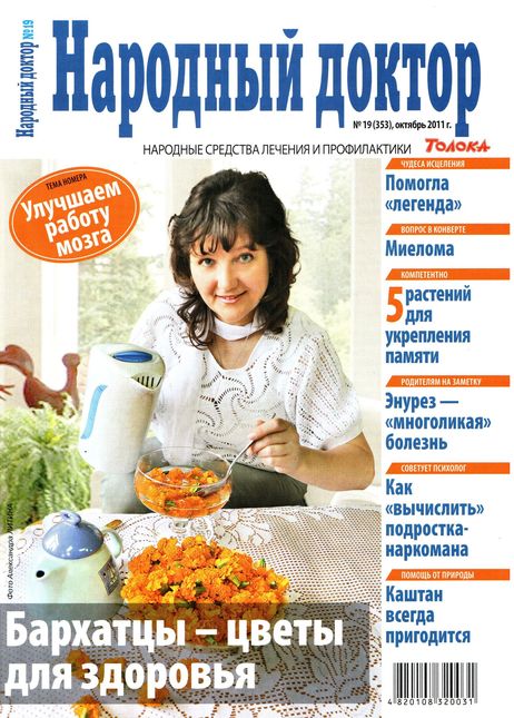 «Народный доктор» - это народные рецепты и советы читателей, травников, физиотерапевтов по профилактике и лечению многих заболеваний. Основная тема номера - витамины на тарелке.