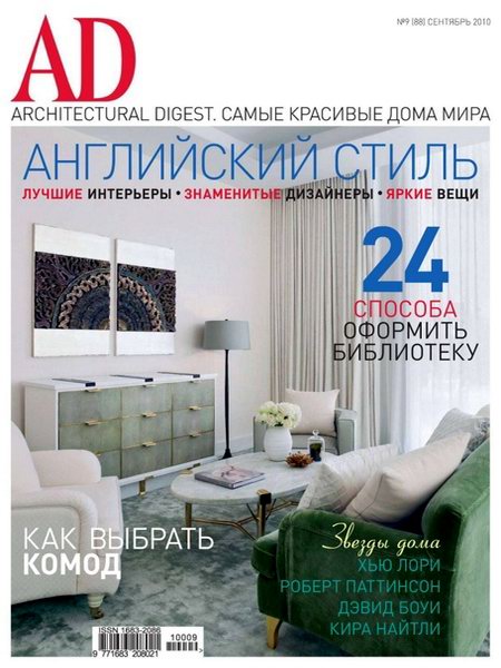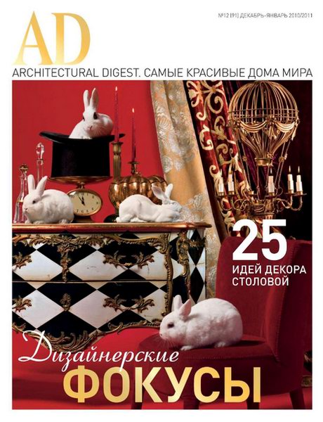Журнал AD (Architectural Digest) — ведущий международный журнал об архитектуре и дизайне. Издается в Америке с начала 20-х годов, в России с сентября 2002 года. За долгие годы завоевал репутацию законодателя интерьерной моды, сформировал вкусы нескольких поколений , источник вдохновения в искусстве создания идеального жизненного пространства.