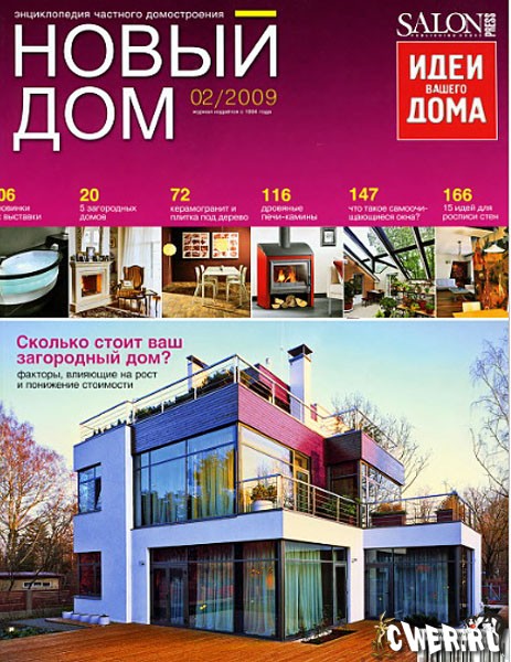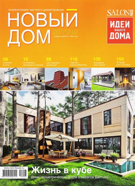 В журнале «НОВЫЙ ДОМ» публикуются наиболее актуальные материалы по вопросам строительства и обустройства загородных домов, оформления придомовой территории, создания ландшафтных композиций. Кроме этого, содержит самую интересную информацию о стилях, направлениях, необычных идеях и их воплощениях в интерьерах коттеджей. «Новый дом» предлагает набор планировочных и оформительских решений, практические рекомендации по созданию различных конструкций, подробные описания этапов строительства домов по различных технологиям, а также выявляет проблемы, которые возникают в процессе строительства дома и последующей эксплуатации, предлагает варианты их решения
