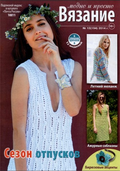 В журнале по вязанию спицами и крючком представлены летние женские модели. Пуловеры, топы, платья, юбки, болеро смотрятся женственно и эффектно благодаря нежным расцветкам, красивой отделке, ажурным узорам.