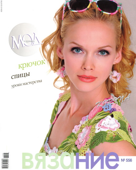 Журнал мод - это журнал по вязанию спицами и крючком. В этом номере: топ-корсет, воротник, кружевные декоры, блузки, жилеты, джемпер, болеро, платья, сумка, мантилька, топ, жакет, юбки, жилет-болеро, пальто, платье и нарукавники, береты, блуза, скатерть, шарф, пуловер.