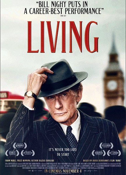 Вдовец, ветеран и госслужащий мистер Уильямс узнает, что смертельно болен. С этого момента он теряет смысл своего существования и пытается сбежать от реальности, пускаясь во все тяжкие. Однажды коллега Маргарет вдохновляет его найти новый смысл в оставшихся днях, побуждая Уильямса спасти важный строительный проект из бюрократического ада. «Жить» — английская драма, вдохновленная культовой японской картиной Акиры Куросавы «Жить», действие которой было перенесено в послевоенный Лондон.
